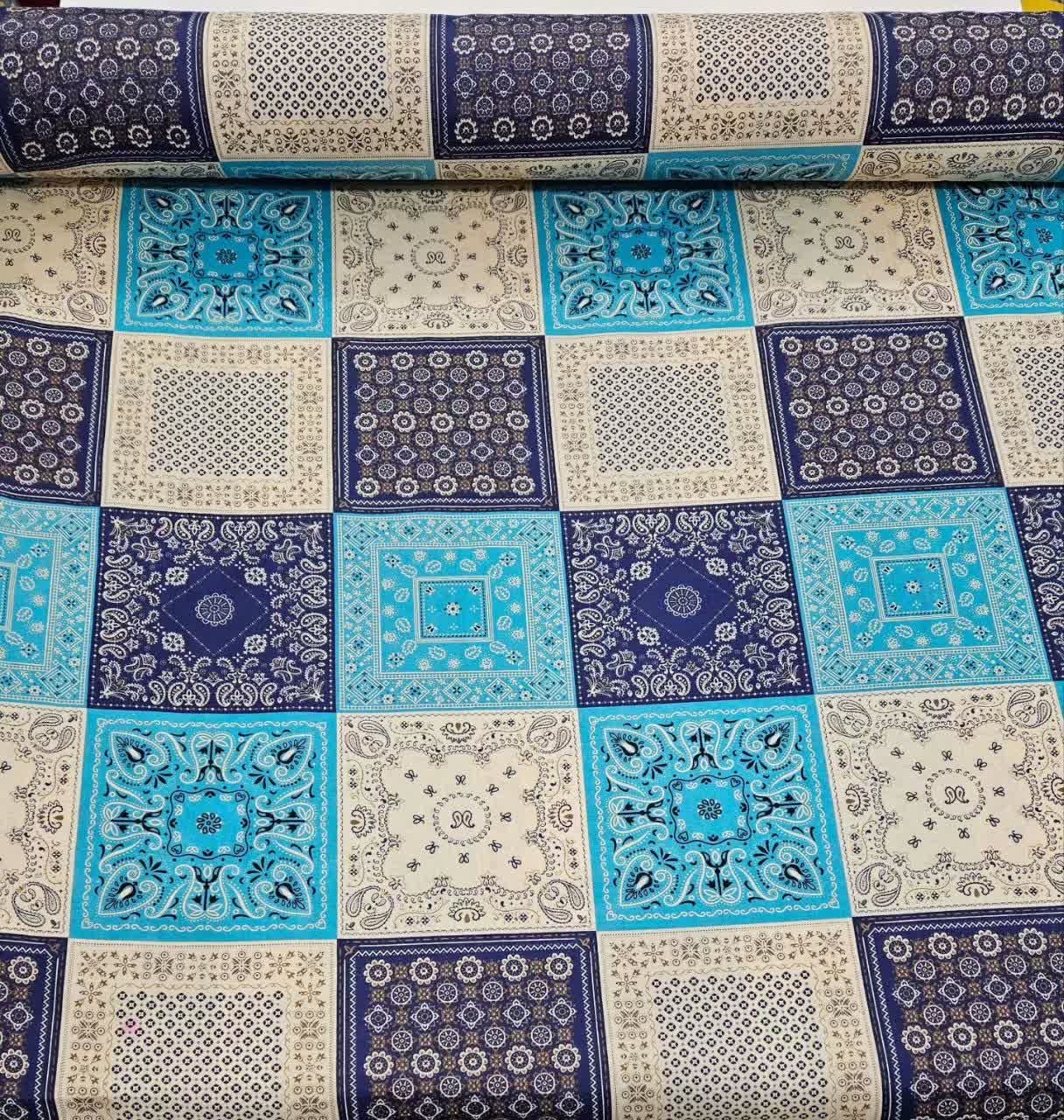 پارچه ملحفه ای عرض دو و نیم ترک طرح چهل تیکه کِرِم